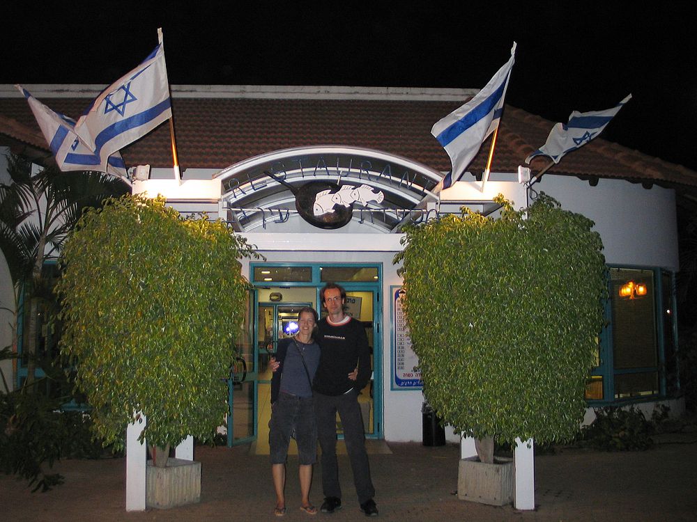 In front of a Kibbutz restaurant.